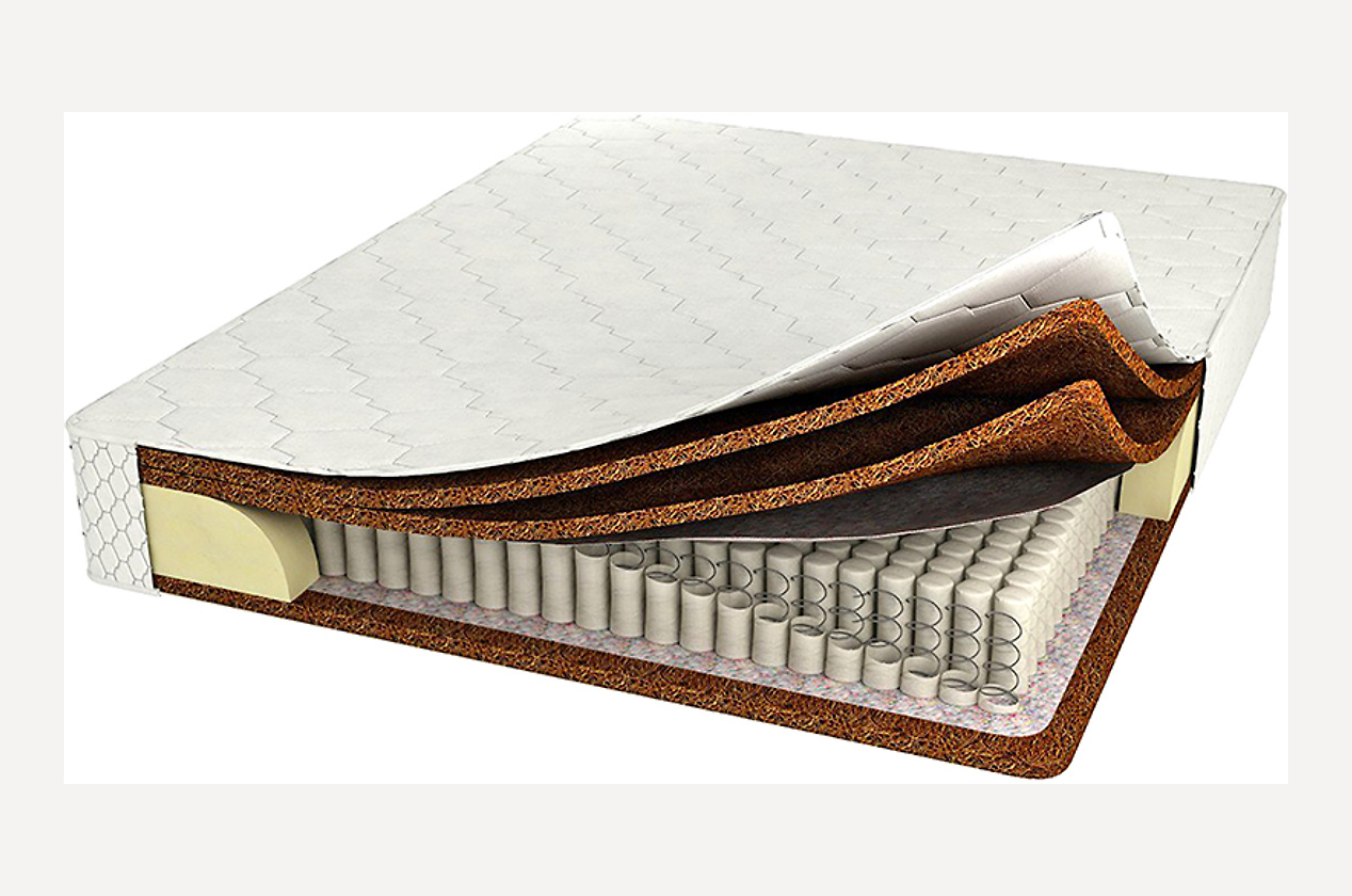 Модель на основе блока независимых пружин (500 пружин на спальное место) и натурального кокоса. Матрас обладает одинаковой жесткостью и отличается ортопедическим эффектом. Трикотажная ткань с высокообъемным наполнителем Hollcon создает все условия для качественного и комфортного сна. Кокосовые пласты не подвержены воздействию влаги, поэтому матрас не накапливает запах, а также не является средой обитания вредных бактерий.