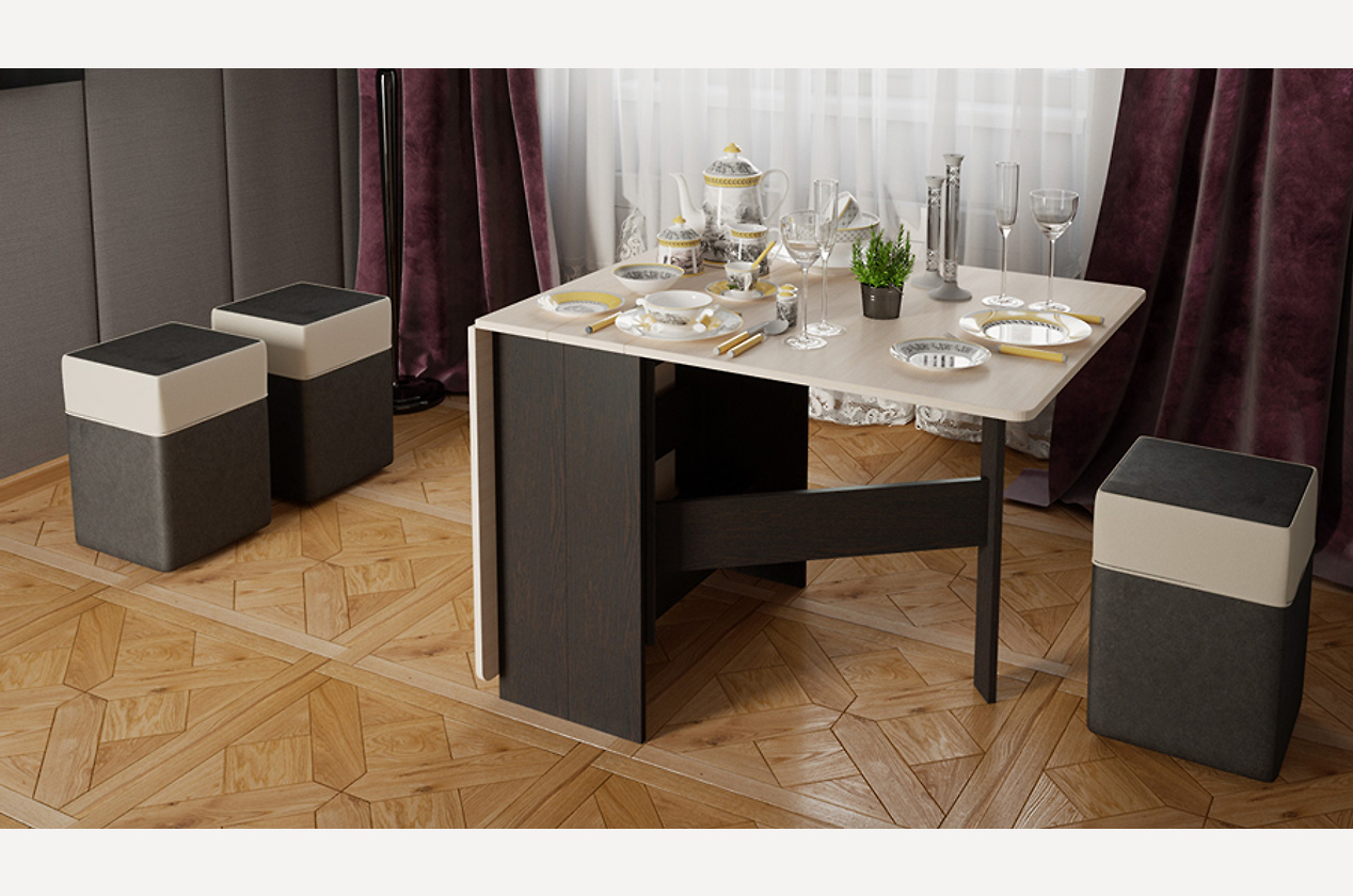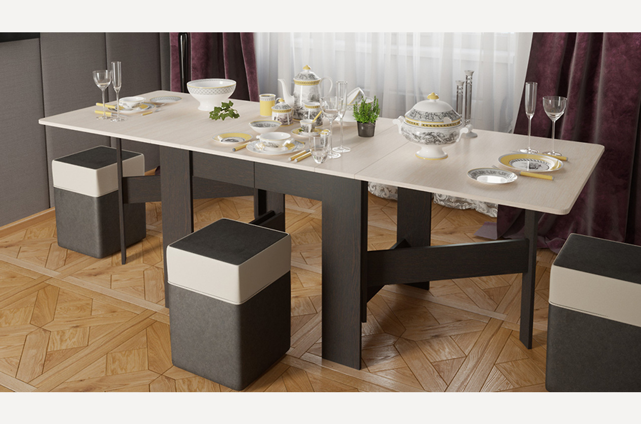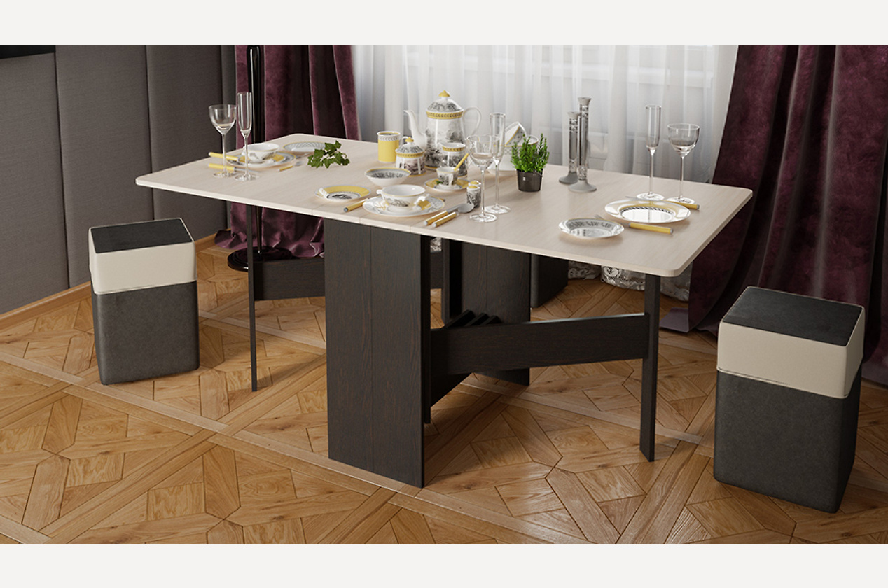 Складной обеденный стол «Тета» – практичное решение для ограниченного пространства кухни или обеденной зоны. В сложенном виде он не займет много места, а в разложенном – станет центром посиделок в большой компании. Откройте одну часть – и перед вами компактный стол для уютного ужина для двоих!