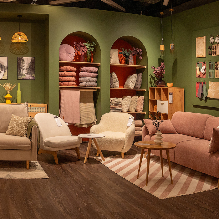 Наши шоурумы — это не только место, где можно выбрать и купить качественную мебель, но и оформленное пространство для вдохновения: готовые интерьеры комнат, яркие витрины, зона трендов.